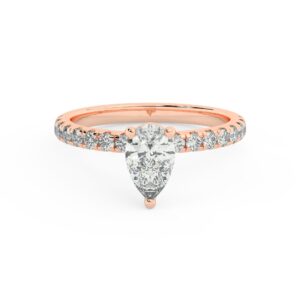50% הנחהטבעת אירוסין סוליטר ויהלומים בצדדים דגם 50012 זהב אדום רוזגולד 14 קראט במרכז זירקוניה 2 קראט בחיתוך טיפה מסביב ובצדדים זירקונים בחיתוך עגול