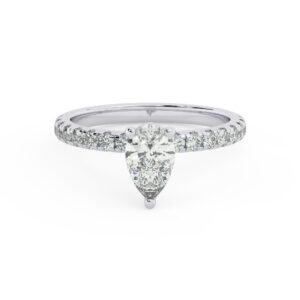 50% הנחהטבעת אירוסין סוליטר ויהלומים בצדדים דגם 50012 זהב לבן 14 קראט במרכז זירקוניה 2 קראט בחיתוך טיפה מסביב ובצדדים זירקונים בחיתוך עגול