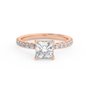 50% הנחהטבעת אירוסין סוליטר וזירקונים בצדדים דגם 50037 זהב אדום רוזגולד 14 קראט במרכז זירקוניה 2 קראט בחיתוך פרינסס מסביב ובצדדים זירקונים בחיתוך עגול
