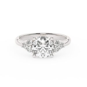 50% הנחהטבעת אירוסין סוליטר וזירקונים בצדדים דגם 50041 זהב לבן 14 קראט במרכז זירקוניה 2 קראט בחיתוך עגול מסביב ובצדדים זירקונים בחיתוך עגול