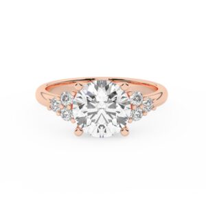 50% הנחהטבעת אירוסין סוליטר וזירקונים בצדדים דגם 50041 זהב אדום רוזגולד 14 קראט במרכז זירקוניה 2 קראט בחיתוך עגול מסביב ובצדדים זירקונים בחיתוך עגול