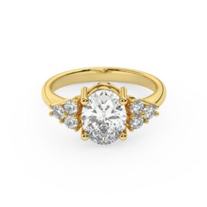 50% הנחהטבעת אירוסין סוליטר וזירקונים בצדדים דגם 50041 זהב צהוב 14 קראט במרכז זירקוניה 2 קראט בחיתוך אובל מסביב ובצדדים זירקונים בחיתוך עגול
