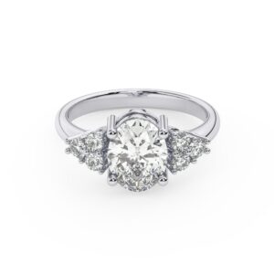 50% הנחהטבעת אירוסין סוליטר וזירקונים בצדדים דגם 50041 זהב לבן 14 קראט במרכז זירקוניה 2.50 קראט בחיתוך אובל מסביב ובצדדים זירקונים בחיתוך עגול