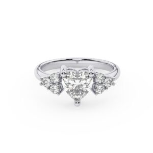 50% הנחהטבעת אירוסין סוליטר וזירקונים בצדדים דגם 50041 זהב לבן 14 קראט במרכז זירקוניה 2 קראט בחיתוך לב מסביב ובצדדים זירקונים בחיתוך עגול