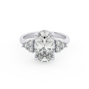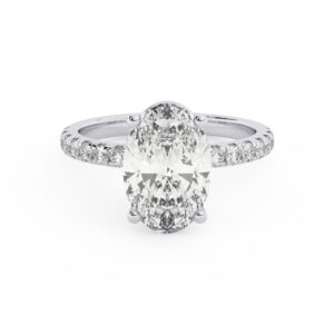 50% הנחהטבעת אירוסין סוליטר וזירקונים בצדדים דגם 50041 זהב לבן 14 קראט במרכז זירקוניה 3 קראט בחיתוך אובל מסביב ובצדדים זירקונים בחיתוך עגול