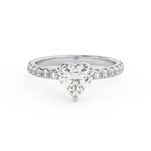 50% הנחהטבעת אירוסין סוליטר וזירקונים בצדדים דגם 50041 זהב לבן 14 קראט במרכז זירקוניה 3 קראט בחיתוך לב מסביב ובצדדים זירקונים בחיתוך עגול