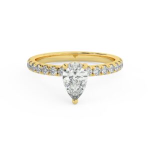 50% הנחהטבעת אירוסין סוליטר וזירקונים בצדדים דגם 50041 זהב צהוב 14 קראט במרכז זירקוניה 3 קראט בחיתוך טיפה מסביב ובצדדים זירקונים בחיתוך עגול