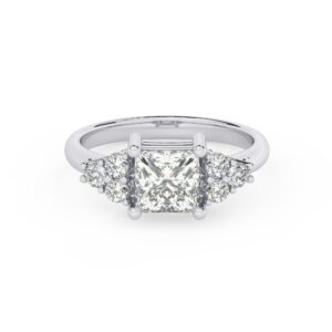 50% הנחהטבעת אירוסין סוליטר וזירקונים בצדדים דגם 50041 זהב לבן 14 קראט במרכז זירקוניה 3 קראט בחיתוך פרינסס מסביב ובצדדים זירקונים בחיתוך עגול