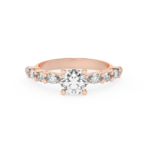 50% הנחהטבעת אירוסין סוליטר ויהלומים בצדדים דגם 50068 זהב אדום רוזגולד 14 קראט במרכז זירקוניה 1 קראט מרקיזה בחיתוך קראט מסביב ובצדדים זירקונים