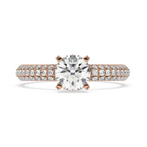 50% הנחהטבעת אירוסין סוליטר ויהלומים בצדדים דגם 50068 זהב אדום רוזגולד 14 קראט במרכז זירקוניה 2 קראט עגול בחיתוך קראט מסביב ובצדדים זירקונים