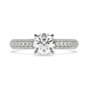 50% הנחהטבעת אירוסין סוליטר ויהלומים בצדדים דגם 50068 זהב לבן 14 קראט במרכז זירקוניה 2.50 קראט עגול בחיתוך קראט מסביב ובצדדים זירקונים