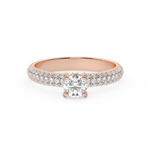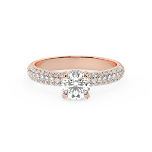 50% הנחהטבעת אירוסין סוליטר וזירקונים בצדדים דגם 50014 זהב אדום רוזגולד 14 קראט במרכז זירקוניה 1 קראט בחיתוך עגול מסביב ובצדדים זירקונים בחיתוך עגול