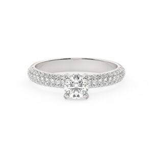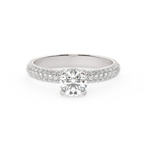 50% הנחהטבעת אירוסין סוליטר וזירקונים בצדדים דגם 50014 זהב לבן 14 קראט במרכז זירקוניה 1.50 קראט בחיתוך עגול מסביב ובצדדים זירקונים בחיתוך עגול