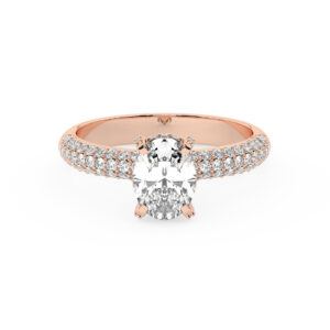 50% הנחהטבעת אירוסין סוליטר ויהלומים בצדדים דגם 50068 זהב אדום רוזגולד 14 קראט במרכז זירקוניה 2.50 קראט אובל בחיתוך קראט מסביב ובצדדים זירקונים