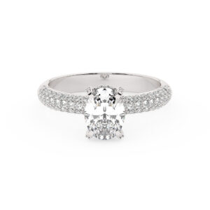 50% הנחהטבעת אירוסין סוליטר ויהלומים בצדדים דגם 50068 זהב לבן 14 קראט במרכז זירקוניה 2.50 קראט אובל בחיתוך קראט מסביב ובצדדים זירקונים