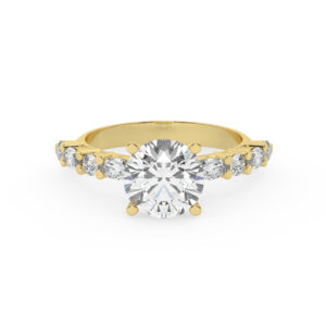 50% הנחהטבעת אירוסין סוליטר וזירקונים בצדדים דגם 50014 זהב צהוב 14 קראט במרכז זירקוניה 5 קראט בחיתוך מרקיזה מסביב ובצדדים זירקונים בחיתוך עגול