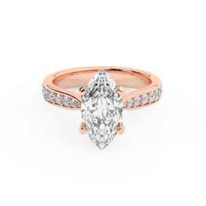 50% הנחהטבעת אירוסין סוליטר וזירקונים בצדדים דגם 50017 זהב אדום רוזגולד 14 קראט במרכז זירקוניה 3 קראט בחיתוך מרקיזה מסביב ובצדדים זירקונים בחיתוך עגול