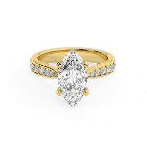 50% הנחהטבעת אירוסין סוליטר וזירקונים בצדדים דגם 50017 זהב צהוב 14 קראט במרכז זירקוניה 3 קראט בחיתוך מרקיזה מסביב ובצדדים זירקונים בחיתוך עגול