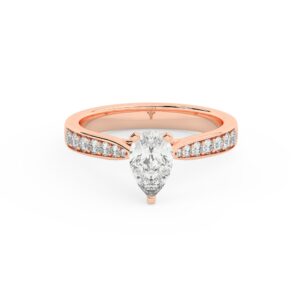 50% הנחהטבעת אירוסין סוליטר וזירקונים בצדדים דגם 50017 זהב אדום רוזגולד 14 קראט במרכז זירקוניה 3 קראט בחיתוך טיפה מסביב ובצדדים זירקונים בחיתוך עגול