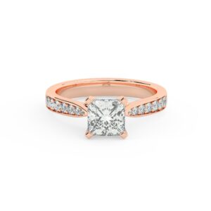 50% הנחהטבעת אירוסין סוליטר וזירקונים בצדדים דגם 50017 זהב אדום רוזגולד 14 קראט במרכז זירקוניה 4 קראט בחיתוך פרינסס מסביב ובצדדים זירקונים בחיתוך עגול