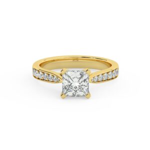 50% הנחהטבעת אירוסין סוליטר וזירקונים בצדדים דגם 50017 זהב צהוב 14 קראט במרכז זירקוניה 4 קראט בחיתוך פרינסס מסביב ובצדדים זירקונים בחיתוך עגול