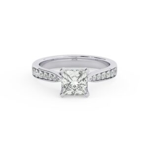 50% הנחהטבעת אירוסין סוליטר וזירקונים בצדדים דגם 50017 זהב לבן 14 קראט במרכז זירקוניה 3 קראט בחיתוך פרינסס מסביב ובצדדים זירקונים בחיתוך עגול