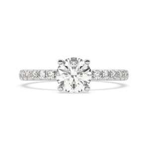 50% הנחהטבעת אירוסין סוליטר וזירקונים בצדדים דגם 50037 זהב לבן 14 קראט במרכז זירקוניה 0.50 קראט בחיתוך עגול מסביב ובצדדים זירקונים בחיתוך עגול