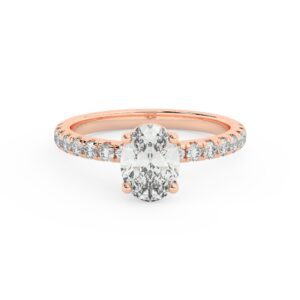 50% הנחהטבעת אירוסין סוליטר וזירקונים בצדדים דגם 50017 זהב אדום רוזגולד 14 קראט במרכז זירקוניה 4 קראט בחיתוך אובל מסביב ובצדדים זירקונים בחיתוך עגול