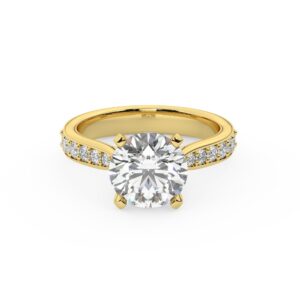 50% הנחהטבעת אירוסין סוליטר וזירקונים בצדדים דגם 50017 זהב צהוב 14 קראט במרכז זירקוניה 2.50 קראט בחיתוך עגול מסביב ובצדדים זירקונים בחיתוך עגול
