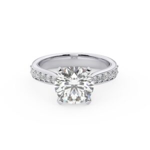 50% הנחהטבעת אירוסין סוליטר וזירקונים בצדדים דגם 50017 זהב לבן 14 קראט במרכז זירקוניה 2.50 קראט בחיתוך עגול מסביב ובצדדים זירקונים בחיתוך עגול