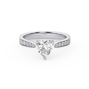 50% הנחהטבעת אירוסין סוליטר וזירקונים בצדדים דגם 50017 זהב לבן 14 קראט במרכז זירקוניה 4 קראט בחיתוך לב מסביב ובצדדים זירקונים בחיתוך עגול