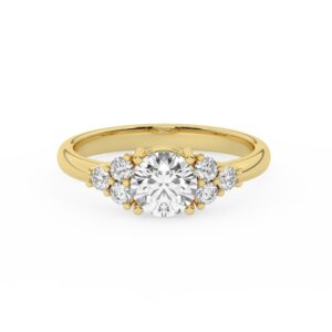 50% הנחהטבעת אירוסין סוליטר וזירקונים בצדדים דגם 50041 זהב צהוב 14 קראט במרכז זירקוניה 1 קראט בחיתוך עגול מסביב ובצדדים זירקונים בחיתוך עגול