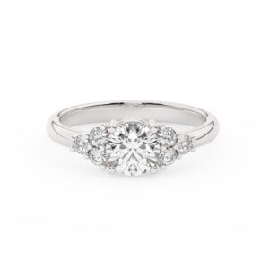 50% הנחהטבעת אירוסין סוליטר וזירקונים בצדדים דגם 50041 זהב לבן 14 קראט במרכז זירקוניה 1 קראט בחיתוך עגול מסביב ובצדדים זירקונים בחיתוך עגול