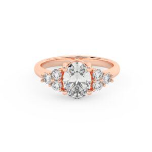 50% הנחהטבעת אירוסין סוליטר וזירקונים בצדדים דגם 50041 זהב אדום רוזגולד 14 קראט במרכז זירקוניה 1 קראט בחיתוך אובל מסביב ובצדדים זירקונים בחיתוך עגול