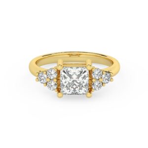 50% הנחהטבעת אירוסין סוליטר וזירקונים בצדדים דגם 50041 זהב צהוב 14 קראט במרכז זירקוניה 0.75 קראט בחיתוך פרינסס מסביב ובצדדים זירקונים בחיתוך עגול