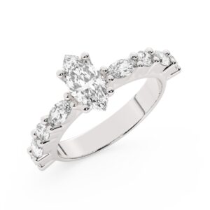 50% הנחהטבעת אירוסין סוליטר ויהלומים בצדדים דגם 50041 זהב לבן 14 קראט במרכז יהלום טבעי 0.75 קראט בחיתוך אובל עם תעודה גמולוגית אמריקאית GIA מסביב ובצדדים יהלומים טבעים במשקל כולל של 0.30 קראט בחיתוך עגול
