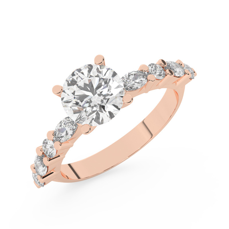 מסביב ליהלום המרכזי, נמצא שישה יהלומים נוספים משני הצדדים, ארבעה מהם בצורה אליפטית (מרקיזה) ומשקל כולל של 0.40 קראט, כמו גם ארבעה יהלומים נוספים בצורה עגולה ומשקל כולל של 0.20 קראט. כל היהלומים הללו הם מאותה מעבדה, מה שמבטיח את איכותם והעוצמה עליהם. יהלומים הם התכשיטים המושלמים לכך – כל אבן מציבה תוספת של זהב ועדינות לעיצוב הכללי של הטבעת.