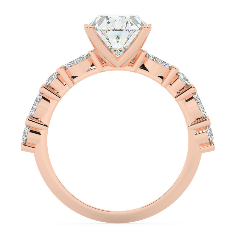 - סגנון: טבעת אירוסין סוליטר ויהלומים בצדדים אבני מעבדה מוסונייט