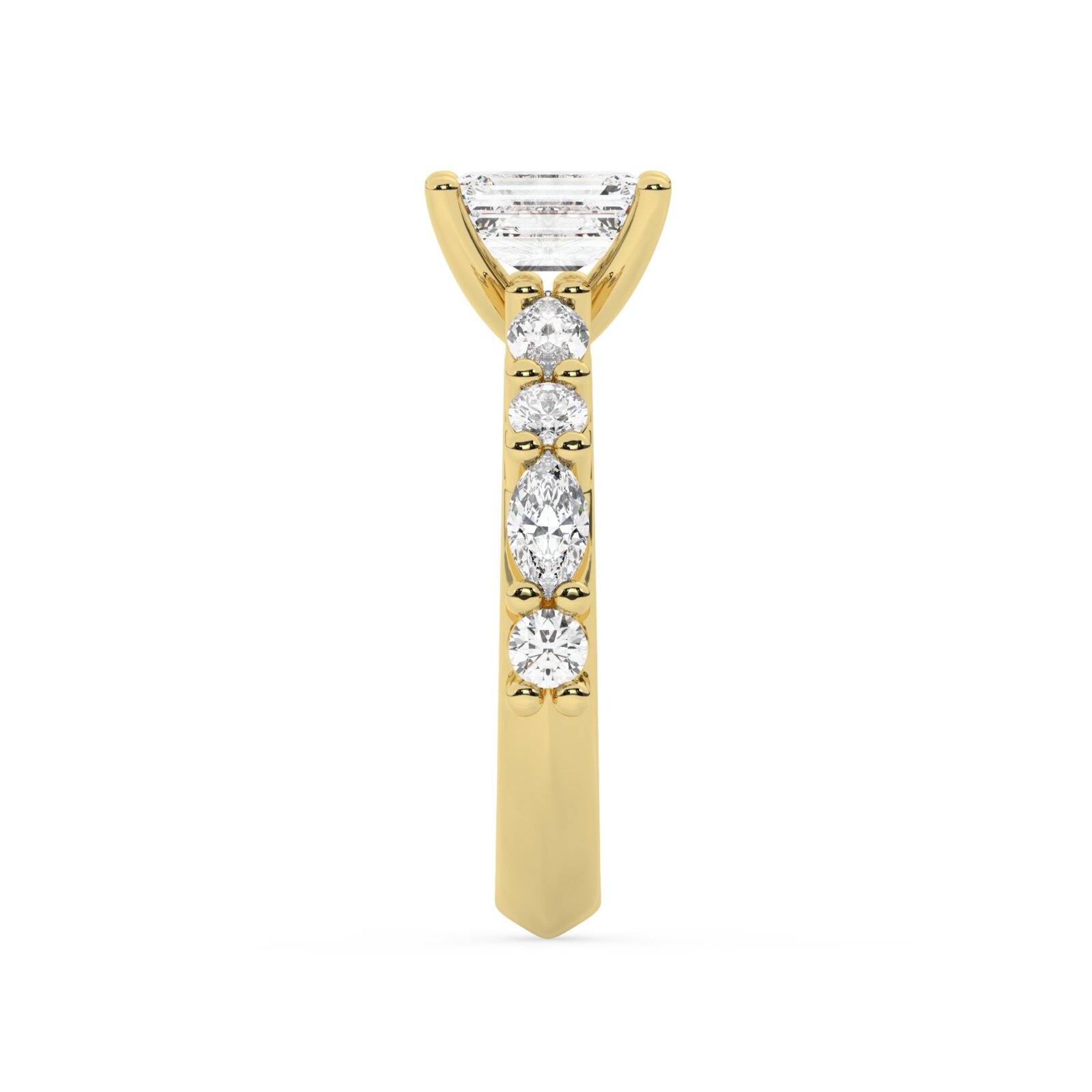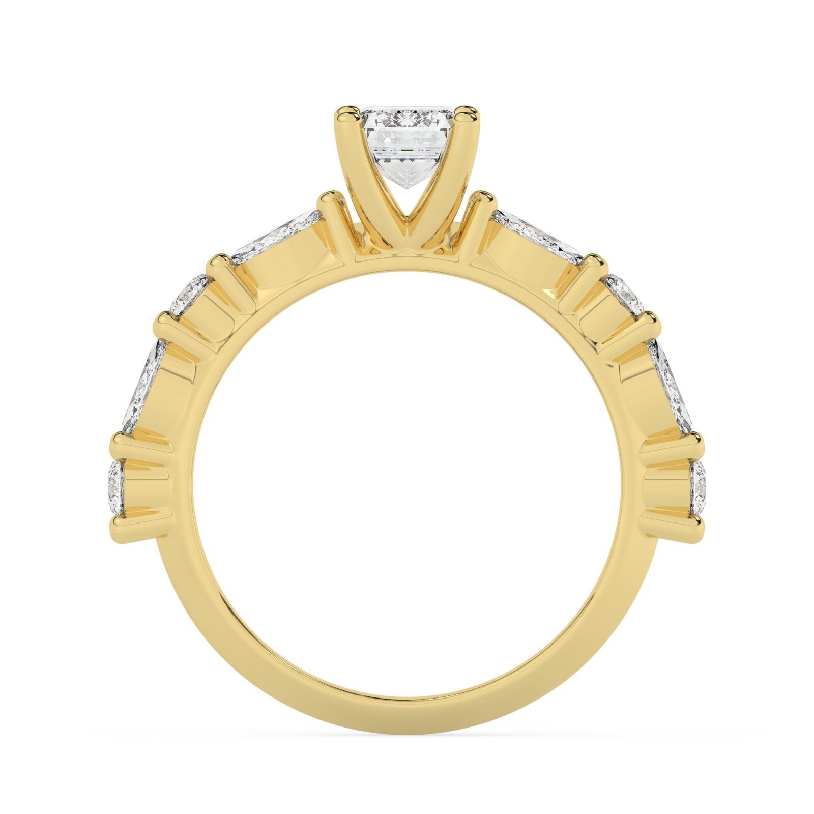 טבעת יהלומי מעבדה – טבעת אירוסין סוליטר עם יהלומים בצדדים