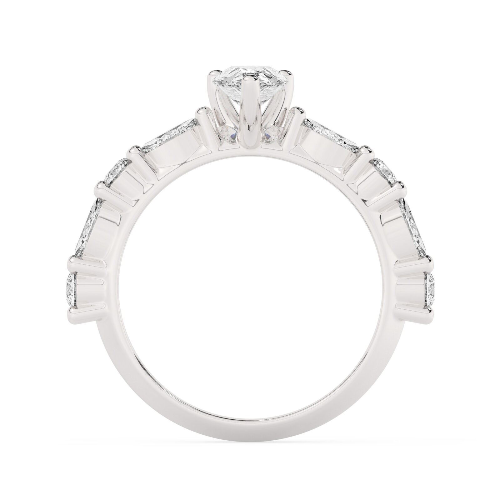 - סגנון: טבעת אירוסין סוליטר ויהלומים בצדדים אבני מעבדה מוסונייט