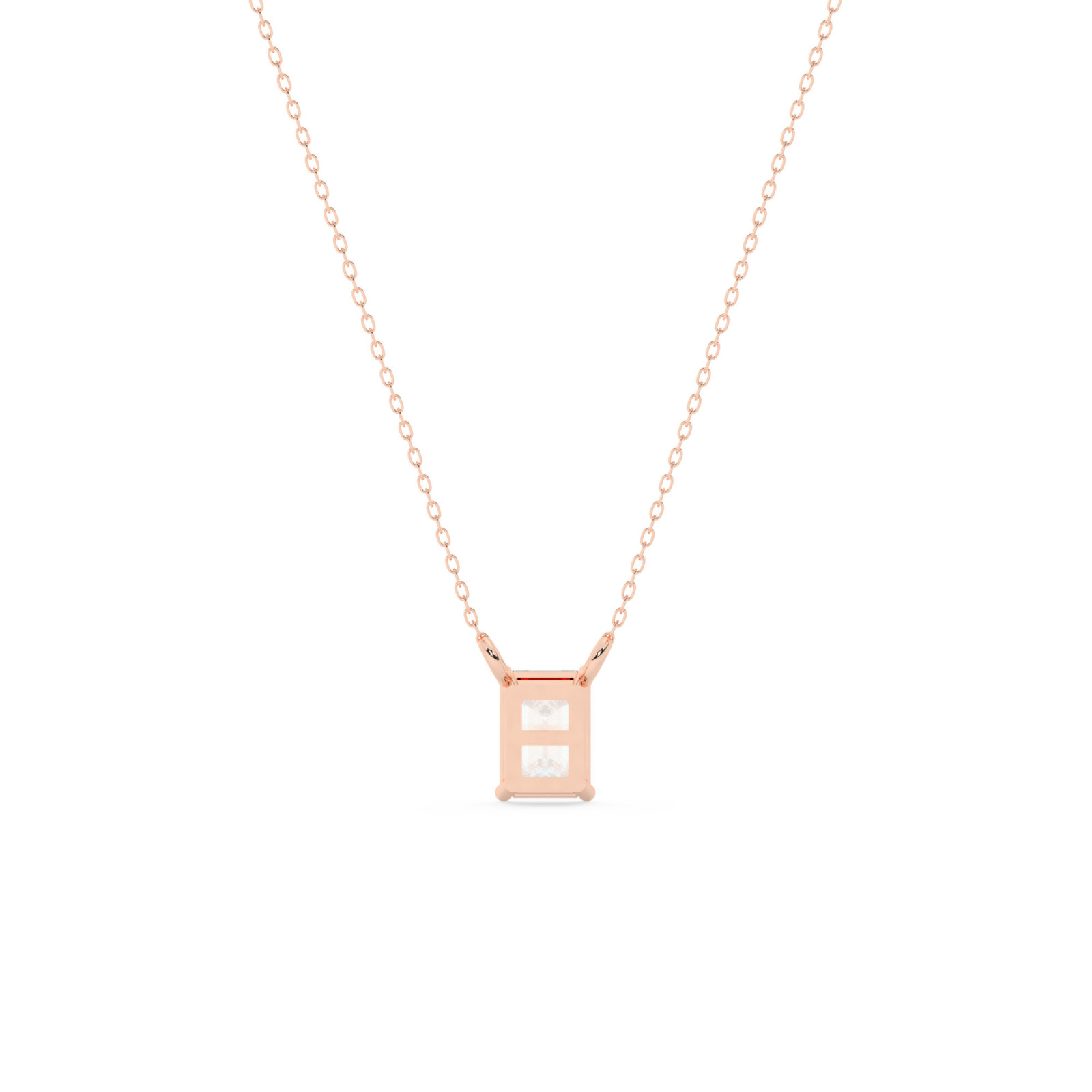 תליון סוליטר עם שרשרת דקה דגם 50080 זהב אדום רוזגולד 14 קראט במרכז זירקוניה במשקל כולל של 0.50 קראט בחיתוך אמרלד עם תעודה גמולוגית