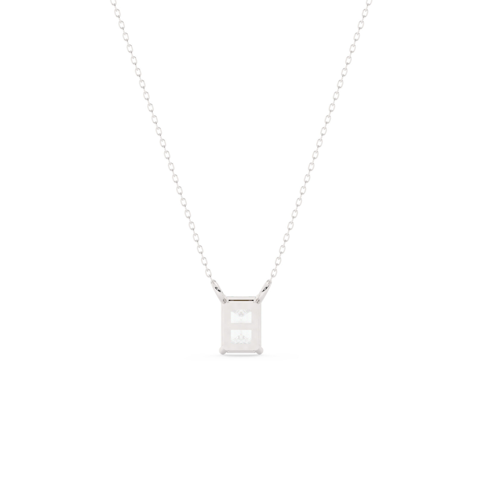 תליון סוליטר עם שרשרת דקה דגם 50080 זהב לבן 14 קראט במרכז זירקוניה במשקל כולל של 0.50 קראט בחיתוך אמרלד עם תעודה גמולוגית