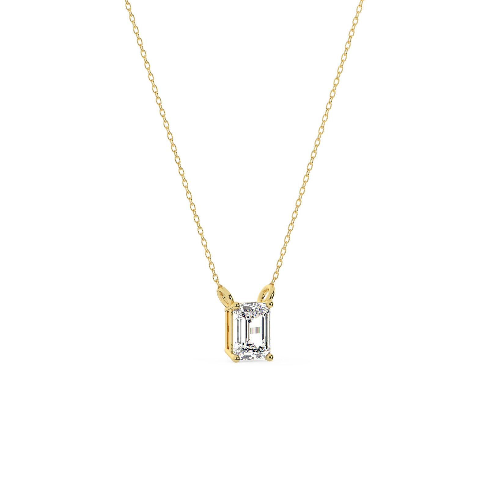 תליון סוליטר עם שרשרת דקה דגם 50080 זהב צהוב 14 קראט במרכז זירקוניה במשקל כולל של 0.75 קראט בחיתוך אמרלד עם תעודה גמולוגית