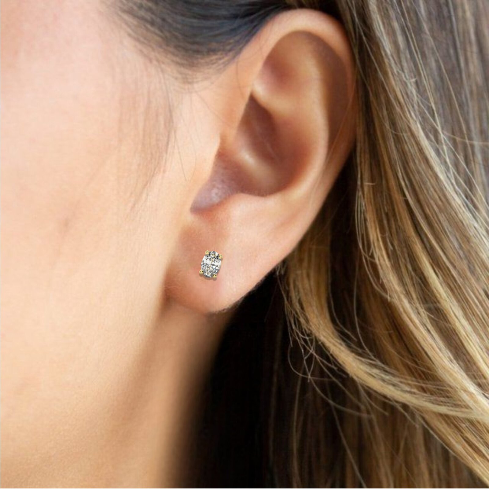 50% הנחהעגילים סוליטר צמודים לאוזן שיבוץ קלאסי דגם 50081 זהב צהוב 14 קראט במרכז זירקוניה במשקל של 0.75 קראט בחיתוך אובל עם תעודה גמולוגית משקל כולל 1.50 קראט