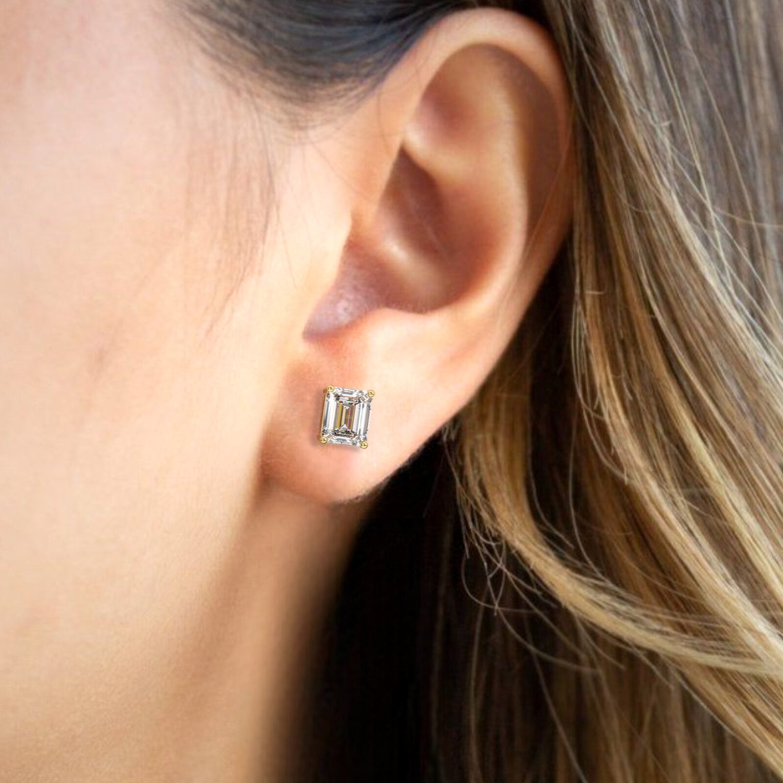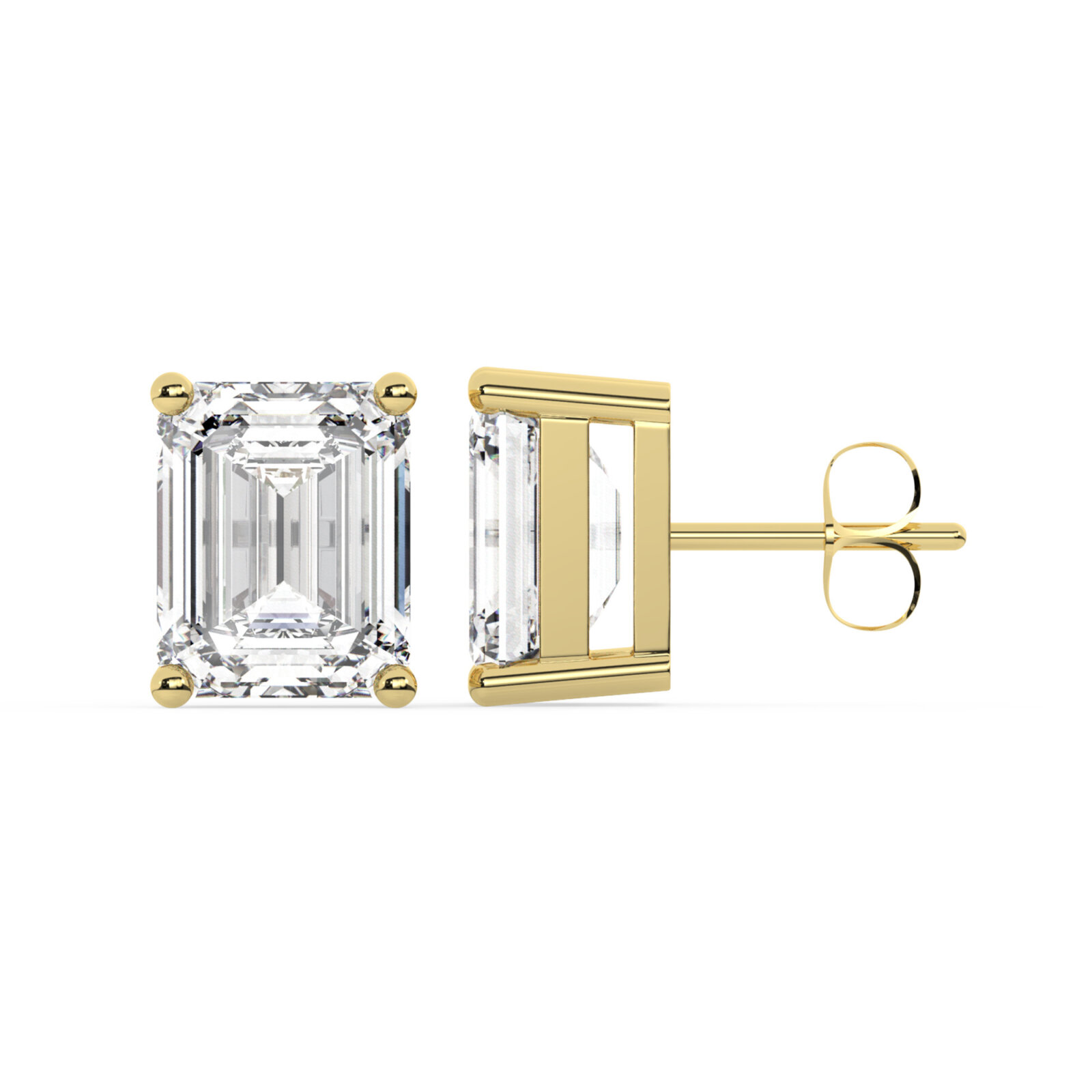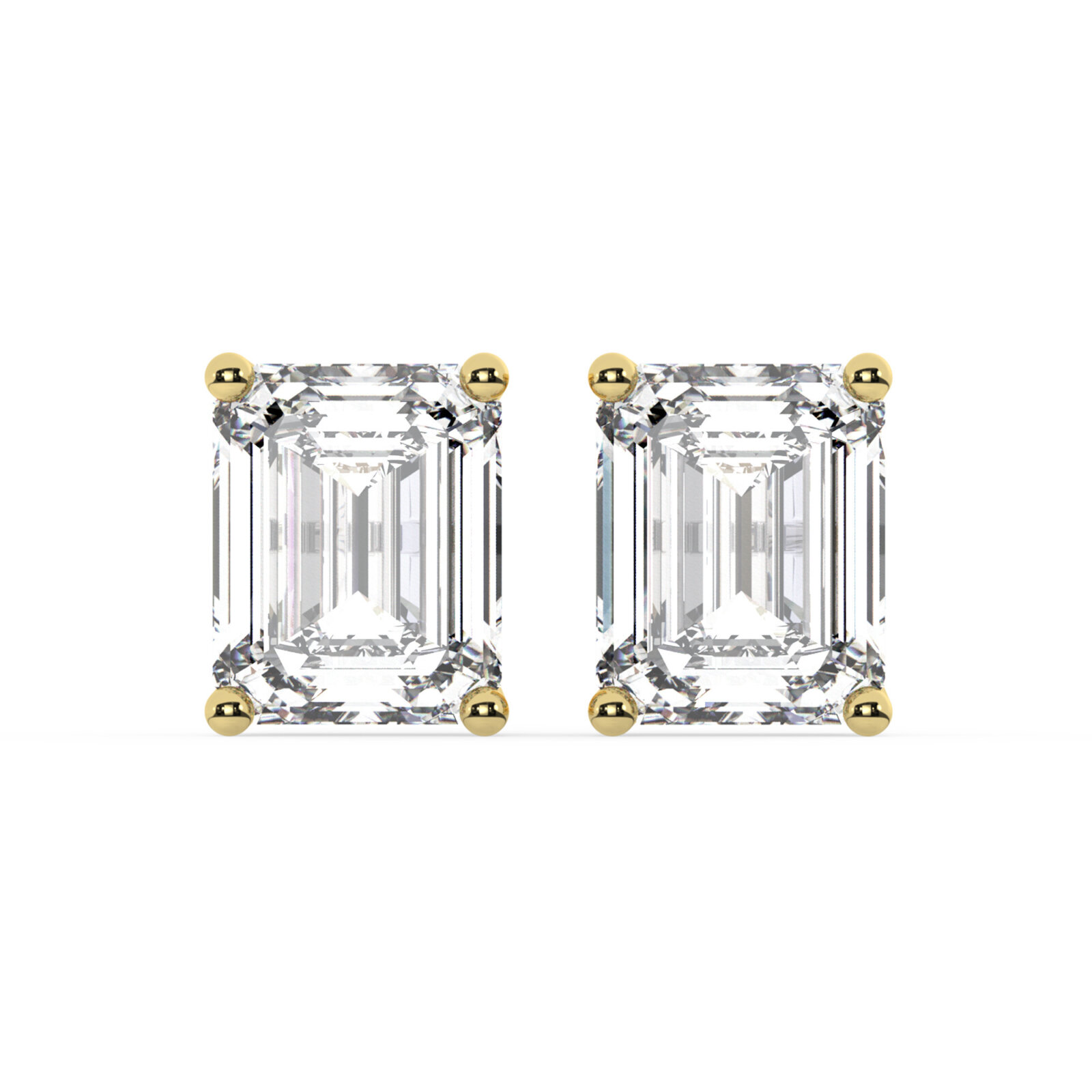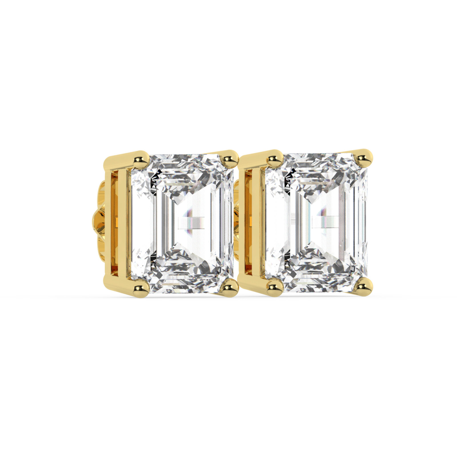 עגילים סוליטר צמודים לאוזן שיבוץ קלאסי דגם 50081 זהב צהוב 14 קראט במרכז יהלום טבעי במשקל של 5 קראט בחיתוך אמרלד עם תעודה גמולוגית אמריקאית GIA משקל כולל 10 קראט