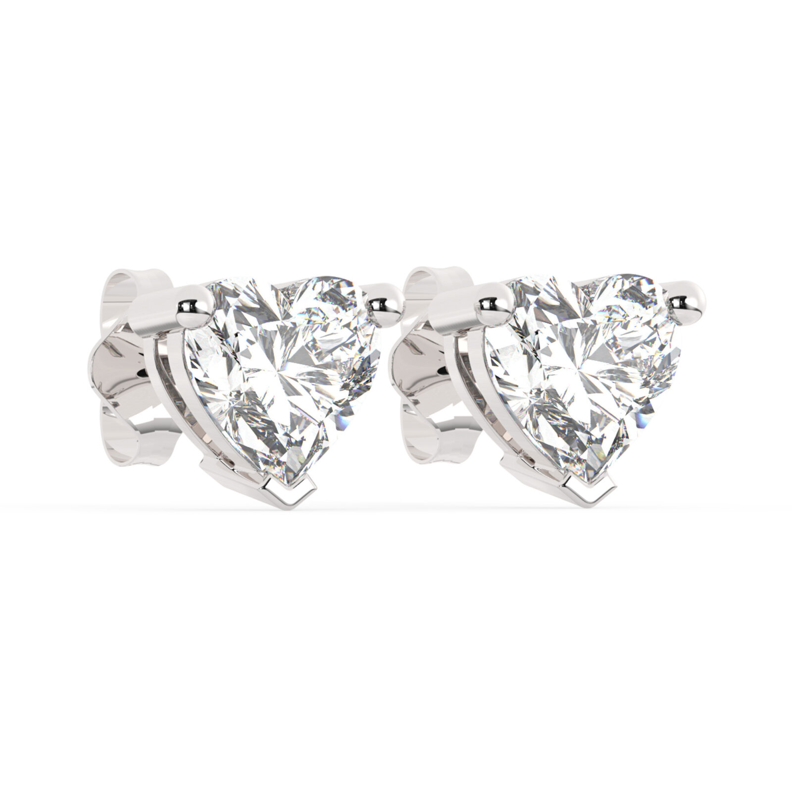 עגילים סוליטר צמודים לאוזן שיבוץ קלאסי דגם 50081 זהב לבן 14 קראט במרכז יהלום טבעי במשקל של 2 קראט בחיתוך לב עם תעודה גמולוגית אמריקאית GIA משקל כולל 4 קראט