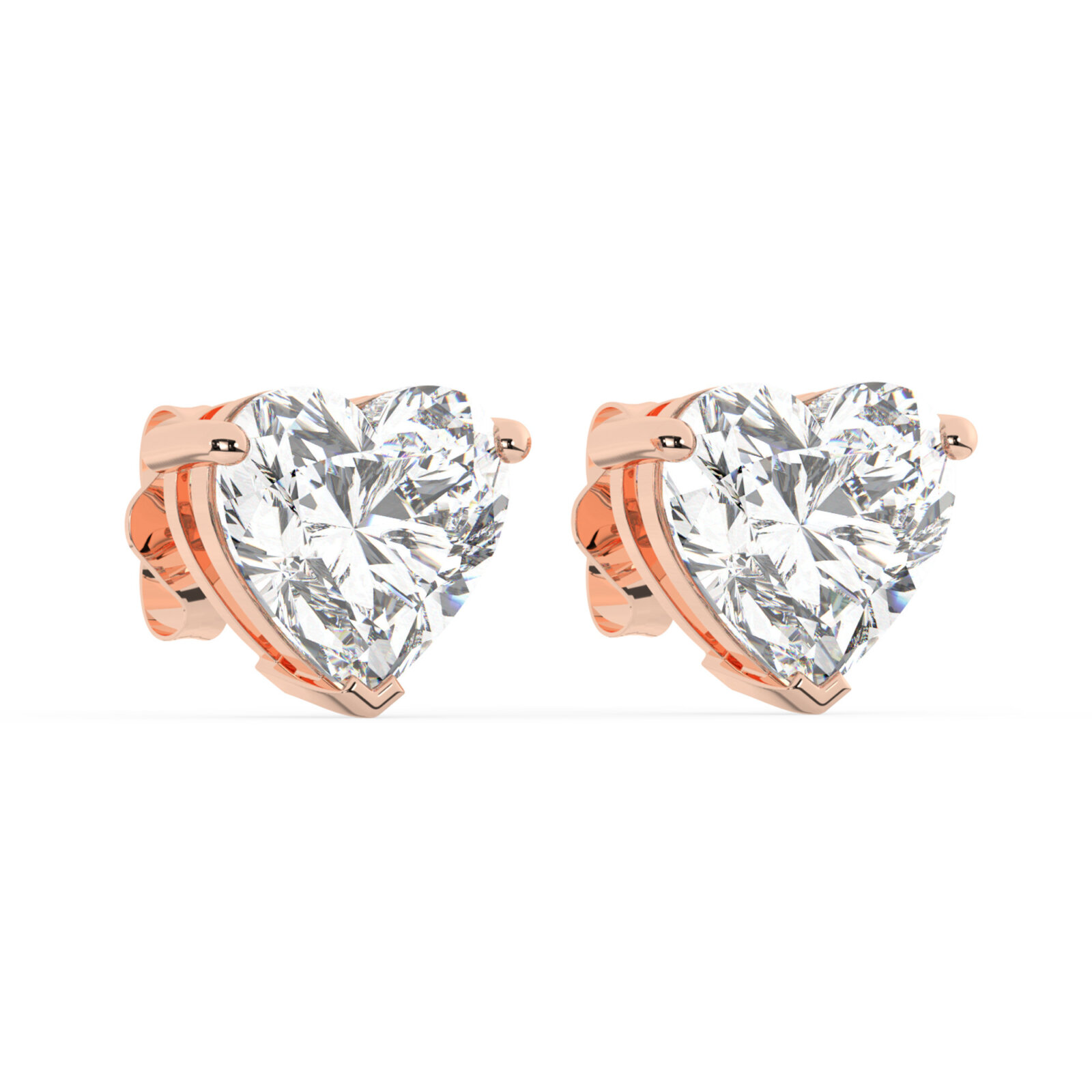 עגילי יהלום מעבדה סוליטר בצורת לב בציפוי זהב אדום רוזגולד – יוקרה מודרנית עם נגיעה רומנטית