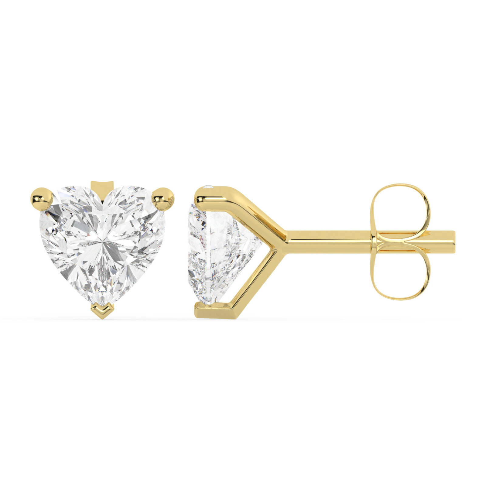 50% הנחהעגילים סוליטר צמודים לאוזן שיבוץ קלאסי דגם 50081 זהב צהוב 14 קראט במרכז אבן מעבדה מוסונייט במשקל של 0.50 קראט בחיתוך לב עם תעודה גמולוגית משקל כולל 1 קראט