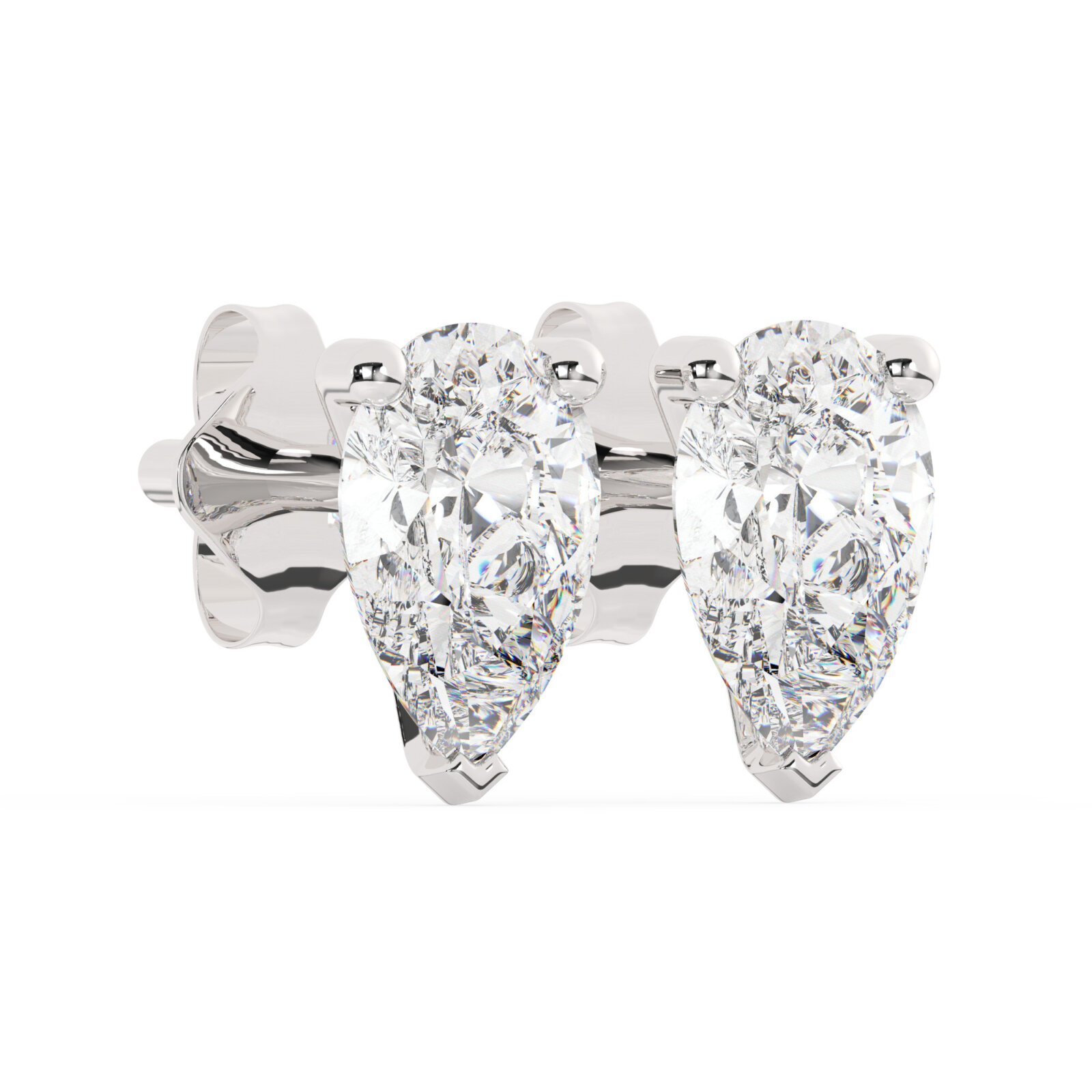 עגילים סוליטר צמודים לאוזן שיבוץ מרטיני דגם 50083 זהב לבן 14 קראט במרכז זירקוניה במשקל של 1 קראט בחיתוך טיפה עם תעודה גמולוגית משקל כולל 2 קראט