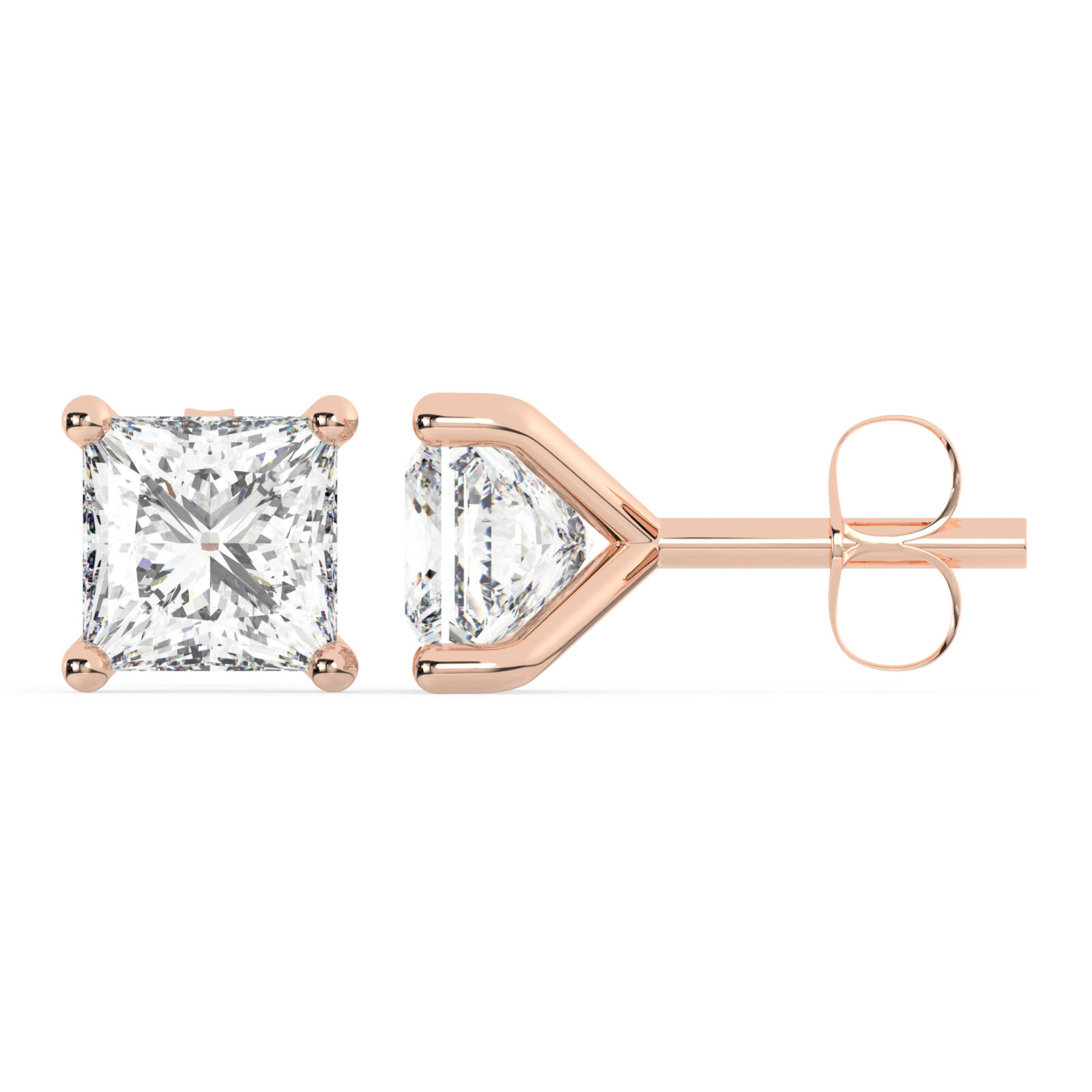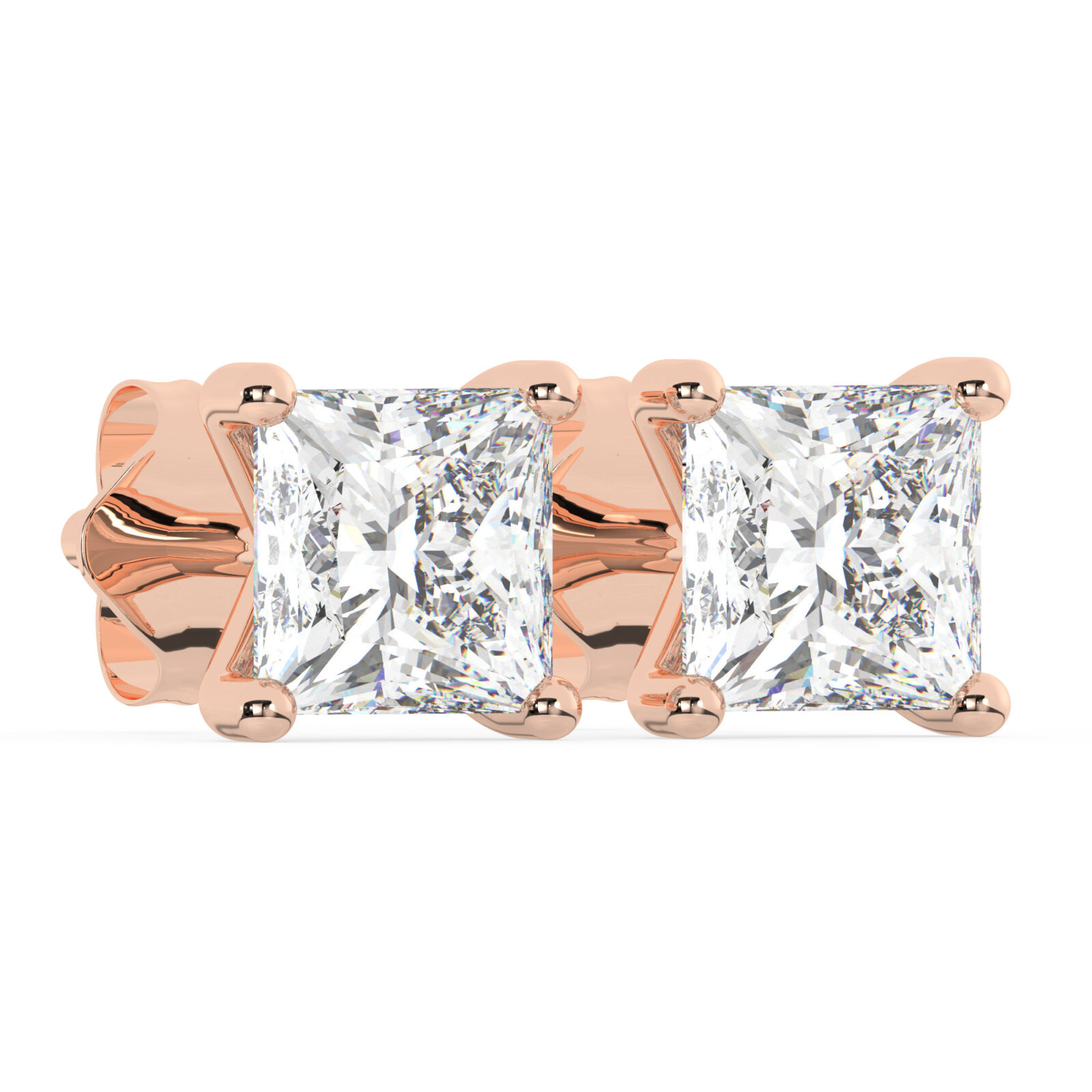 עגילים סוליטר צמודים לאוזן שיבוץ מרטיני דגם 50083 כסף מצופה זהב אדום רוזגולד במרכז Moissanite במשקל של 0.50 קראט בחיתוך פרינסס עם תעודה גמולוגית משקל כולל 1 קראט